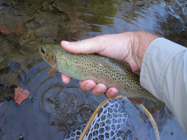 I netted 2 hours on a little wild stream nearby Saturday. It was 44 degrees in Shelby Saturday morning, but it was probably upper 50's in the mountains when my buddy Micah and I stepped in the water around 11:30am. The stream was low and clear, the sky was a cloudless Carolina blue, and the leaves were already beginning to show their fall color. As soon as my boot hit the river bed I stopped second guessing if this short time on the water would be worth the effort. Just to stand in the stream, even without a fly rod, on this perfect fall day would have been worth it.